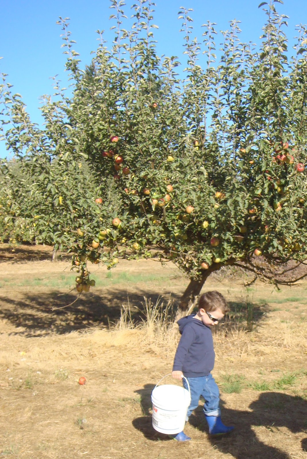 Growing up, we used to sing this little diddy every morning to thank God before breakfast -- the Johnny Appleseed Song, which goes like this, "Oh! The Lord's been good to me. And so I'll thank the Lord for giving me the things I need like the sun, and the rain, and the apple seed. The Lord's been good to me. Amen, amen, amen!" Well, a few weeks back, Kiel and I did a study in his preschool work (Oh! Have I STILL not posted about that? Okay, I will do that soon. It's been reeeeally fun!) on apples, and it was a huge deal to go to the apple orchard in Sherwood, Oregon this Saturday to do some apple picking of our very own.